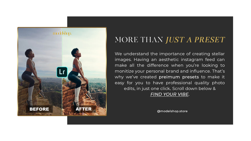 Welcome in! At Modelshop, I believe everyone has the power to build a digital empire— it all starts with the right tools. My journey began from working professionally as a freelance graphic designer, brand strategist, social media manager and creative director. What began as a vision to help creatives and brand owners express their passion through digital branding has grown into a platform that equips entrepreneurs, creatives, dreamers and content creators alike with the digital assets they need to thrive. From customizable templates and powerful eBooks to planners and Lightroom presets and more, I create more than just digital products, but creating opportunities for creatives to transform their passions into a legacy, build brands that resonate, and make paths to their expressive freedom. - @ChanelleRenee